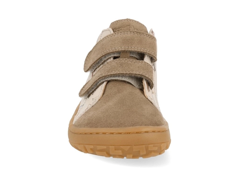 Apavi ir īpaši lokani, lai pēc iespējas imitētu basu kāju izjūtas un bērna kāja varētu aktīvi darboties arī vēsākā gadalaikā. Lipklipši ļaus apavu platumu pielāgot jebkura platuma pēdām. Ūdeni atgrūdoša un videi draudzīga dabīgā āda. Ilgtspējīgs produkts un ražošana. Gumijas ārējā zole ar papildu protektoriem labākai saķerei.
