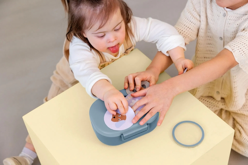 Īpaša priekšrocība – bērni paši var personalizēt savu pusdienu kārbiņu! Komplektā iekļautas divas abpusēji apdrukātas kartītes, kā arī pieejami papildu dizaini, izmantojot QR kodu. Tas padara katru kārbiņu unikālu un vēl aizraujošāku lietošanā.
