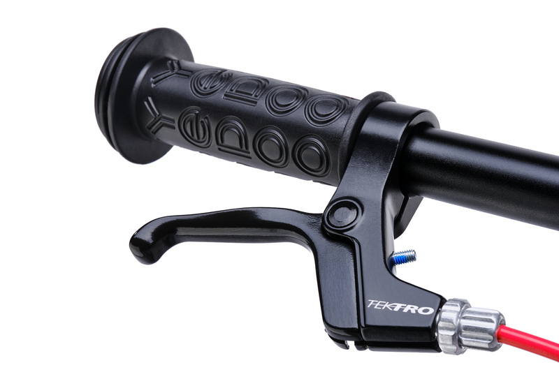 - bremzes atbilst gan pēc lieluma, gan pēc stipruma mazam lietotājam, kabelis piestiprināts zem rāmja un ved uz aizmugurējo riteni, kur ir Alu Promax sistēmas bremze.