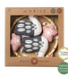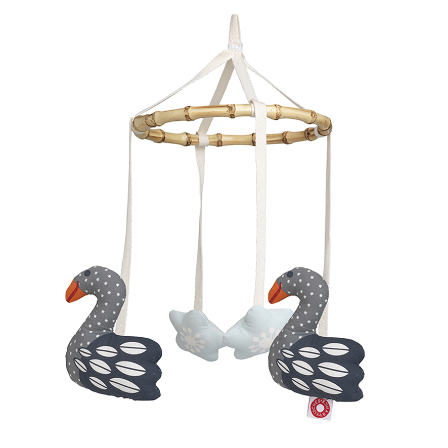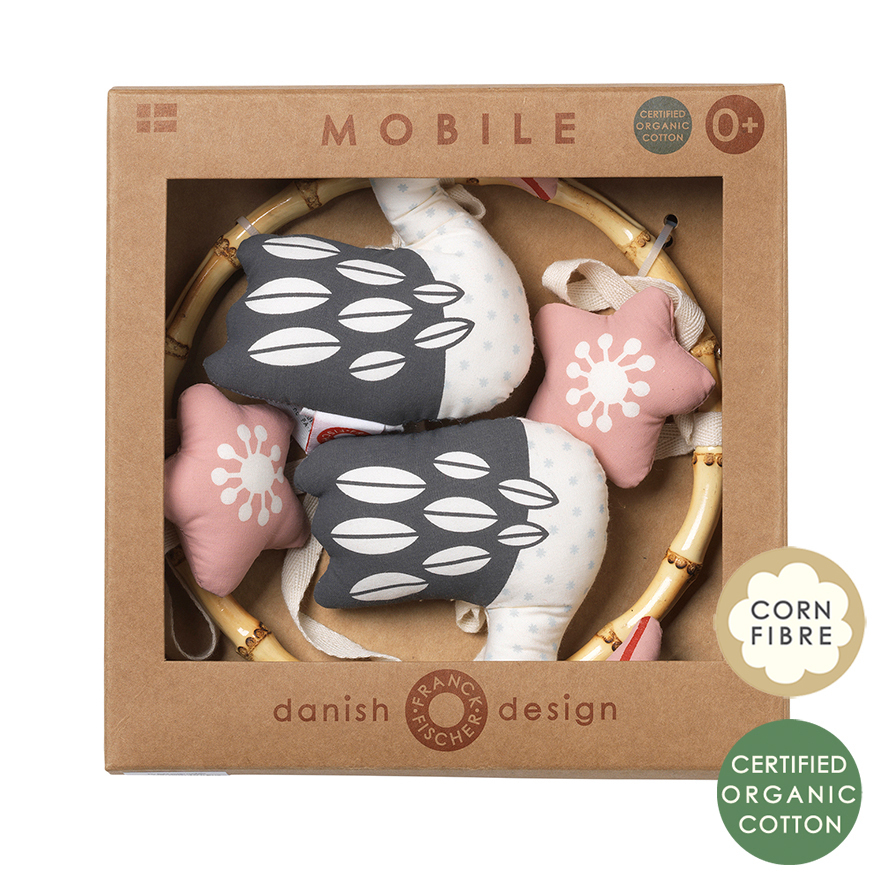 Mobilis jeb iekarināma rotaļlieta pašiem mazākajiem. Košie kontrasti stimulēs mazuļa redzi, piesaistīs uzmanību un veicinās koncentrēšanos. Izgatavošanai izmantoti dabiski materiāli - organiskā kokvilna, kukurūzas šķiedras pildījums, riķņķis izgatavots no bambusa.