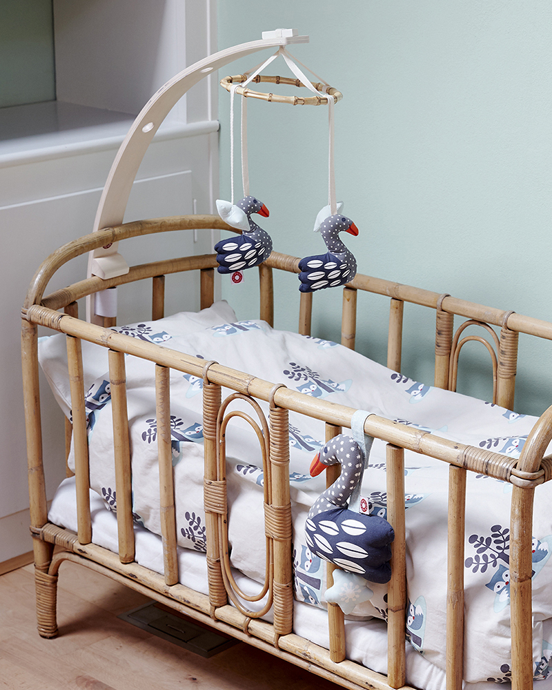 Rotaļlieta būtu jāpārvieto no gultiņas, bērnam neaizsniedzamā vietā, tiklīdz mazais sāk sēdēt vai celties kājās.