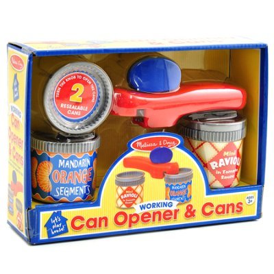 Spēlēm virtuvē - konservu attaisāmais un 2 vairākkārt taisāmas vaļā - ciet bundžiņas. Šis būs lielisks papildinājums, ja jums jau ir rotaļu virtuve - retāk redzēta, bet ļoti interesanta mototiku attīstoša rotaļlieta bērna lomu spēlēm.