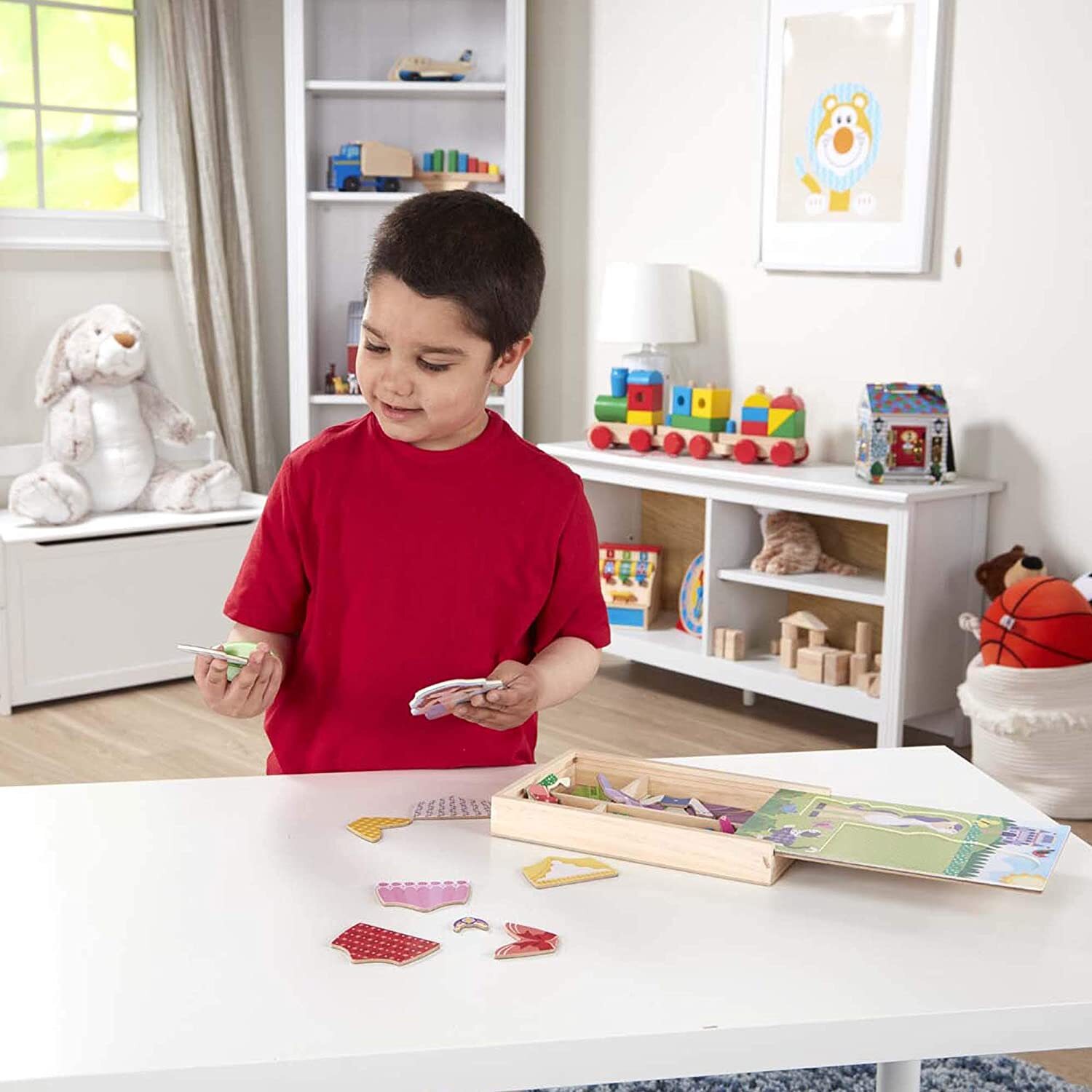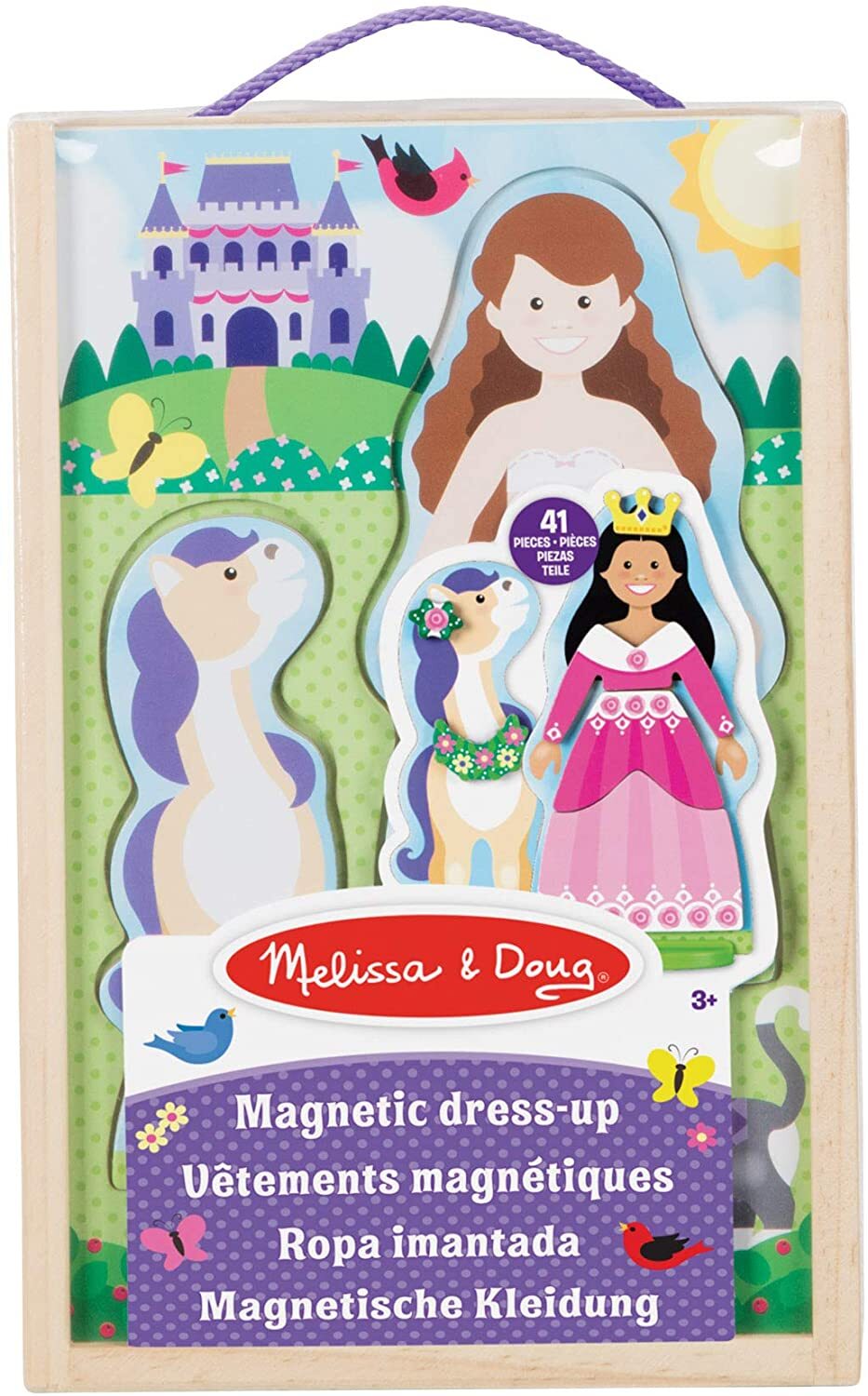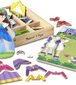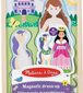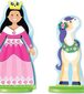 Komplektā ietilpst 2 divpusējas figūras ar balstu (tas nozīmē 2 dažādas princeses un 2 dažādi zirdziņi), 37 magnēti - drēbes un aksesuāri.