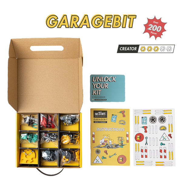 Saglabā savus transportlīdzekļus ideālā stāvoklī ar GarageBit, kurā ir vairāk nekā 200 krāsaini uzgriežņi, skrūves, formas uzgaļi, uzlīmes un mūsu bezatkritumu daudzfunkcionālais iepakojums, kas pārvēršas par daļu no spēles pieredzes.