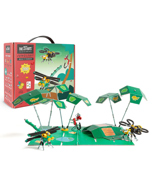 Izveidojiet vienreizējus džungļus, kas bagāti ar kokiem, ezeriem un ziediem. Sagatavojies neparastam džungļu piedzīvojumam ar JungleBit — perfektu iztēles, dabas un bezgalīgas radošuma apvienojumu. Komplekts, kurā ir vairāk nekā 200 krāsaini uzgriežņi, skrūves, formas uzgaļi, uzlīmes un mūsu bezatkritumu daudzfunkcionālais iepakojums, kas pārvēršas par daļu no spēles piere