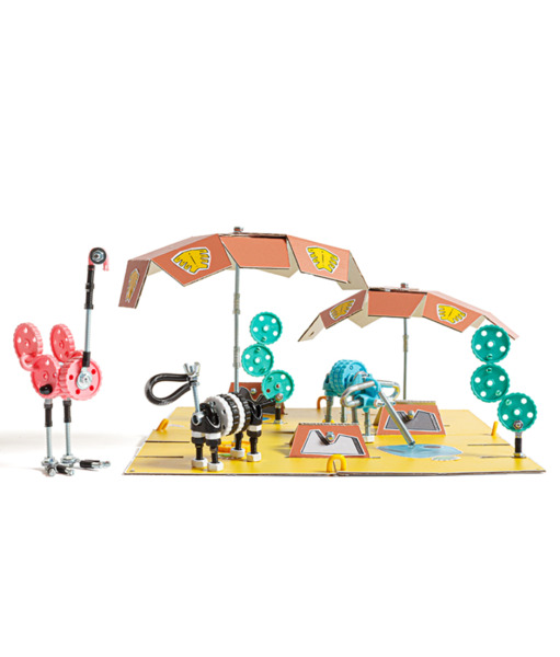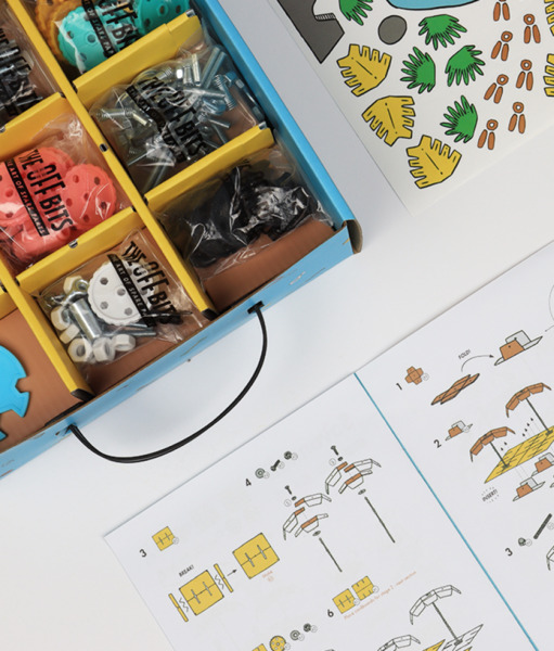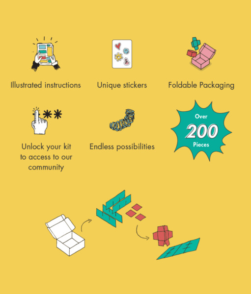 Komplekts, kurā ir vairāk nekā 200 krāsaini uzgriežņi, skrūves, formas uzgaļi, uzlīmes un mūsu bezatkritumu daudzfunkcionālais iepakojums, kas pārvēršas par daļu no spēles pieredzes.